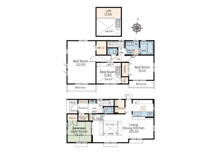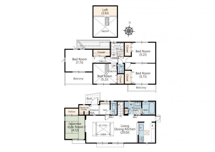 1号棟間取り♪ 5LDK+ロフト+S.I.C |