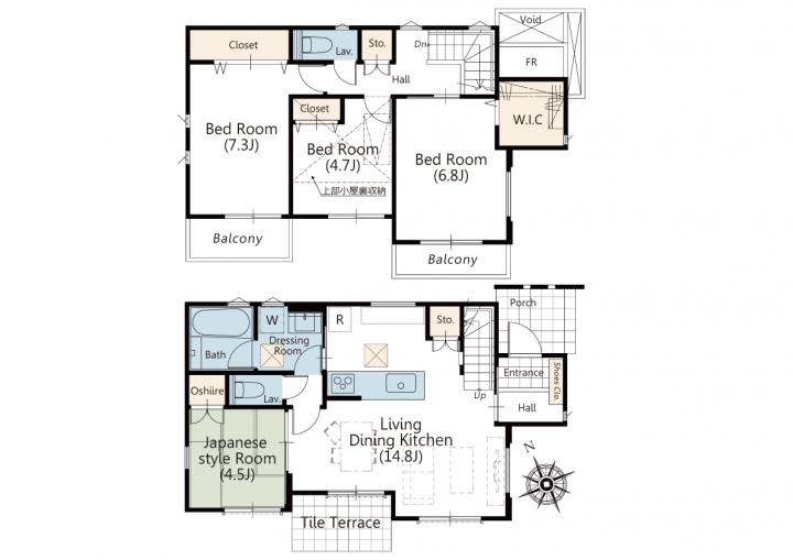 吉祥寺北町5丁目1号棟 間取りです♪全室南向きで明るいお部屋、お庭にタイルテラス♪