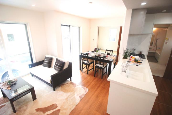 吉祥寺北町5丁目1号棟のLDKです♪ 実際の内装、照明を是非ご覧ください! |