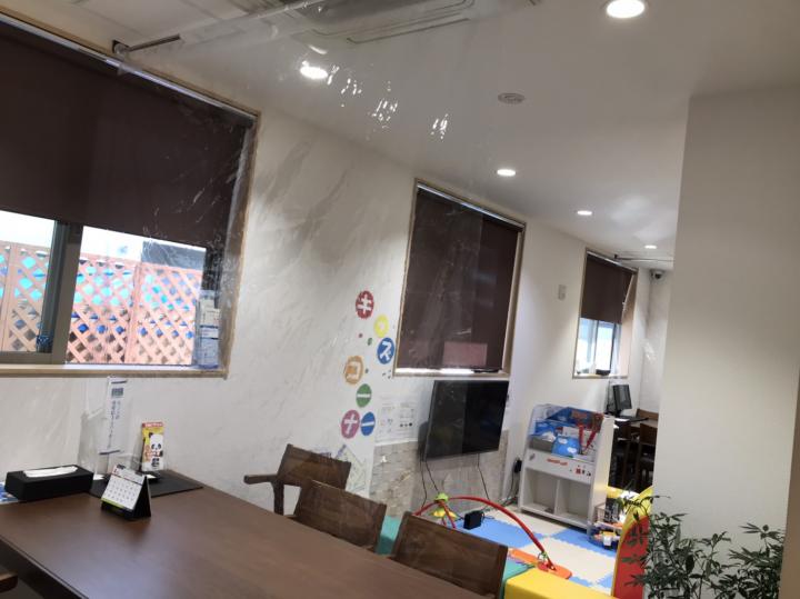 少し分かりづらいですが、テーブルの真ん中に透明なカーテンを設け、飛沫感染の予防に努めさせて頂いております。